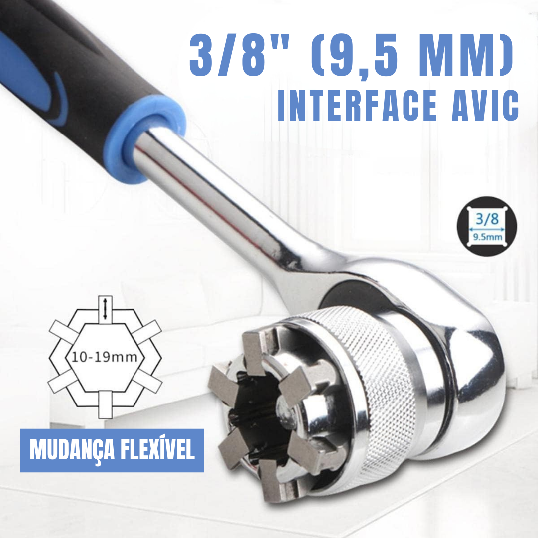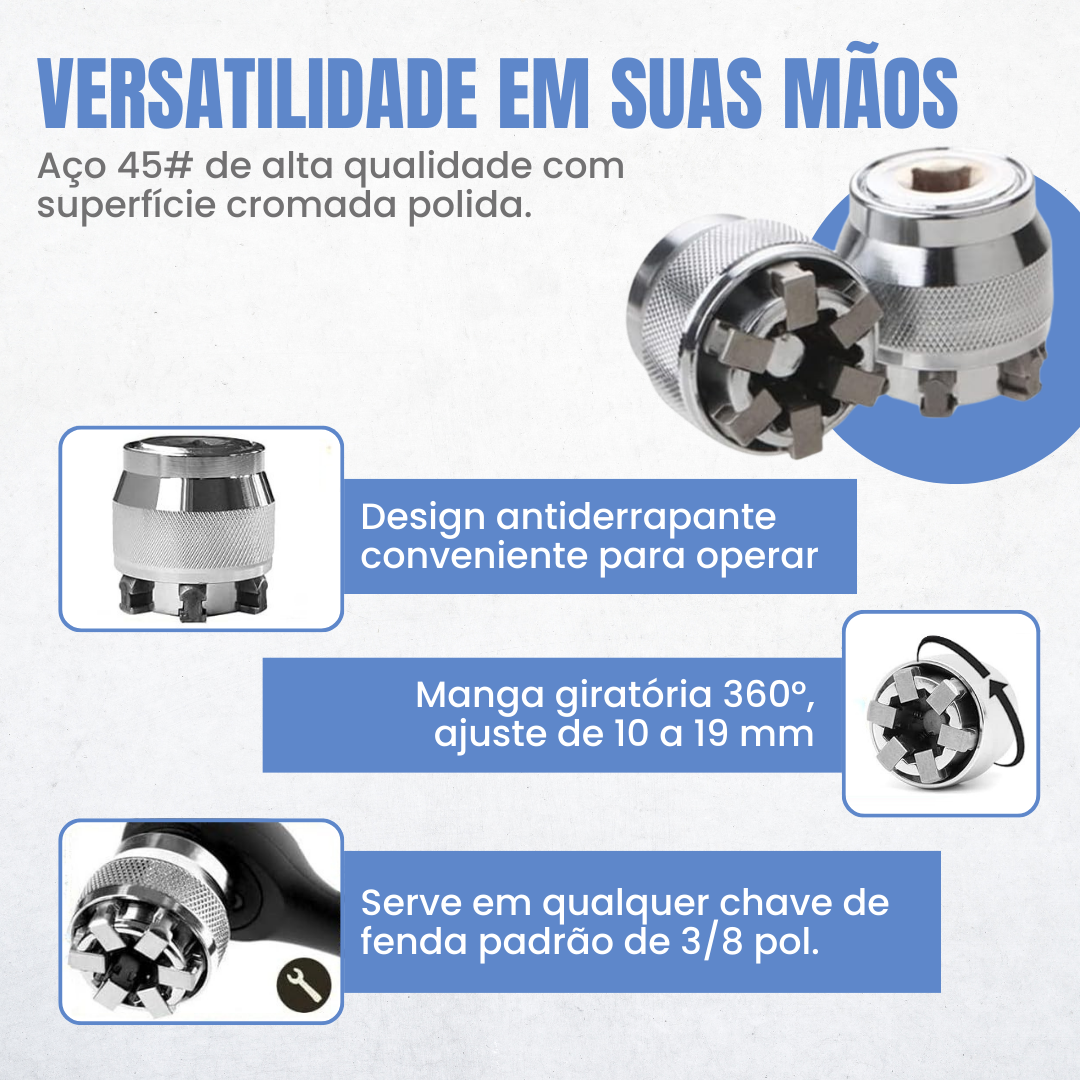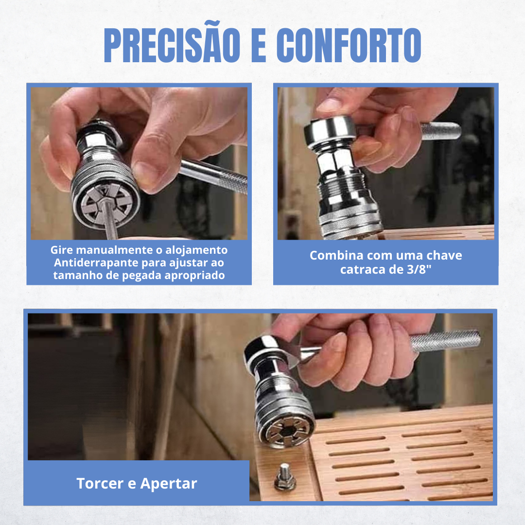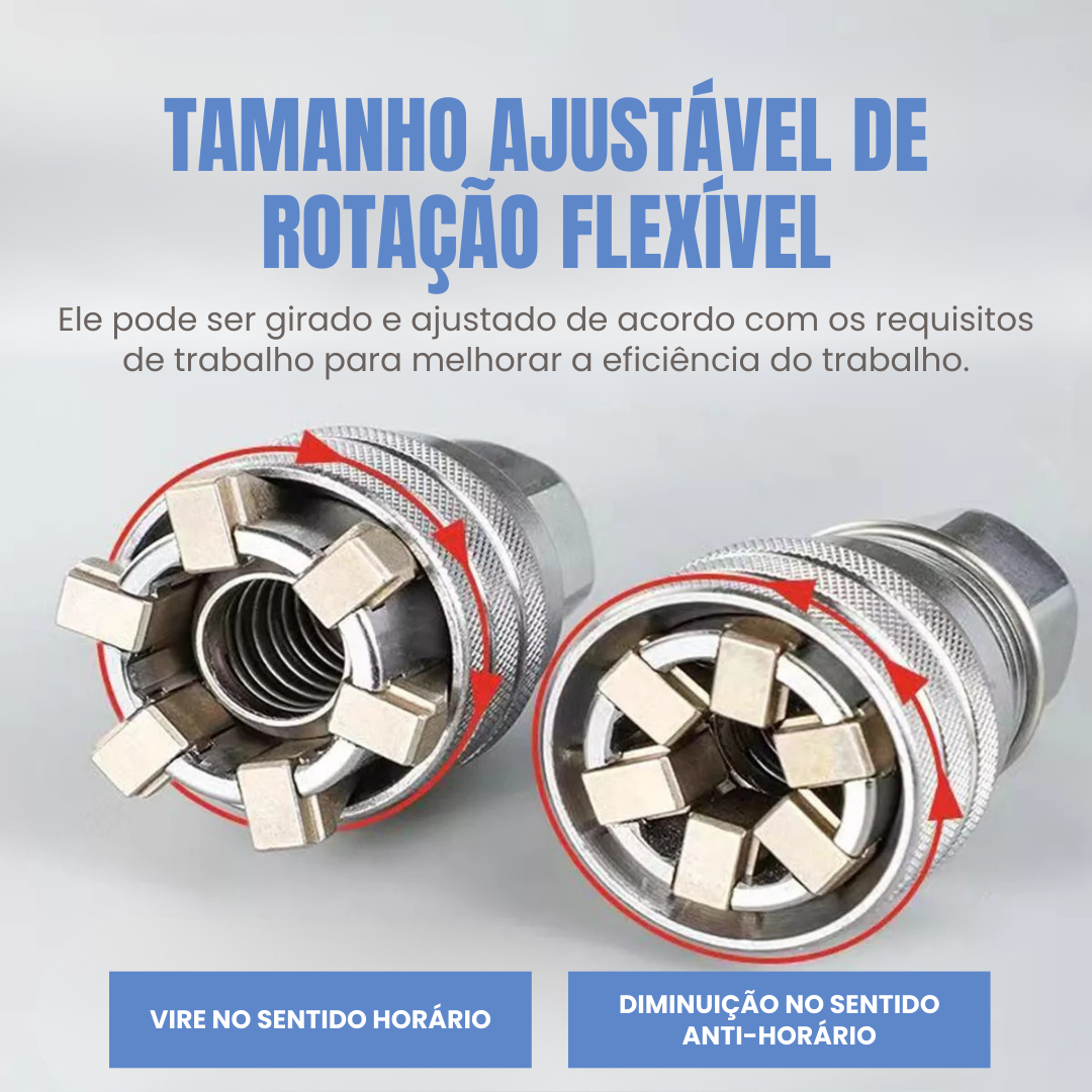 Pode ser montado num berbequim elétrico para melhorar a eficiência do seu trabalho, especialmente quando precisa de aparafusar muitas porcas de diferentes tamanhos.