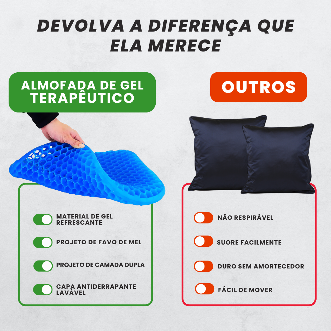 A melhor almofada terapêutica em gel Comfort™, com design e tecnologia em favo de mel; dar-lhe-á uma melhor qualidade de vida